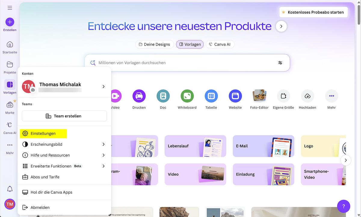 - Canva: Hier geht es zu den Privatsphäre-Einstellungen: Screenshot und Hervorhebungen: Thomas Michalak Berlin